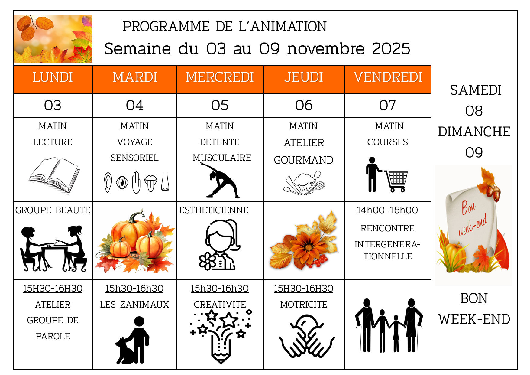 Planning de l’animation